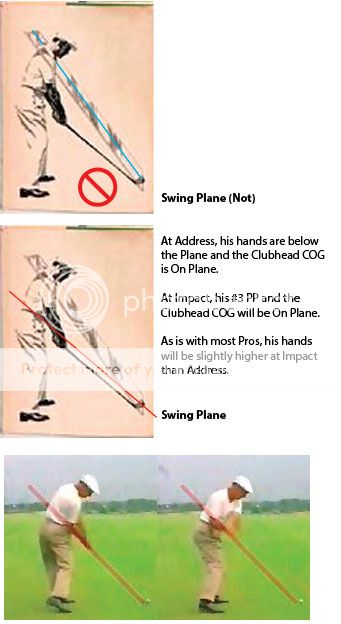 http://www.lynnblakegolf.com/forum/post94266-1.html So, in the context of this post, post #1 of this thread is not practical? Hogan just said DON'T GO ABOVE the glass plane and the DOWN SWING plane is relocated BECAUSE OF AXIS TILT. Hogan did not talk about COG plane or "sweet spot" plane. Likely because he was smart enough to know it was not useful to the golf swing beyond an accademic curiosity. HB |